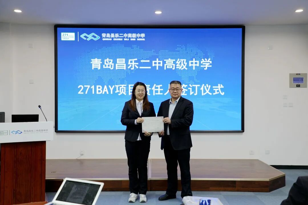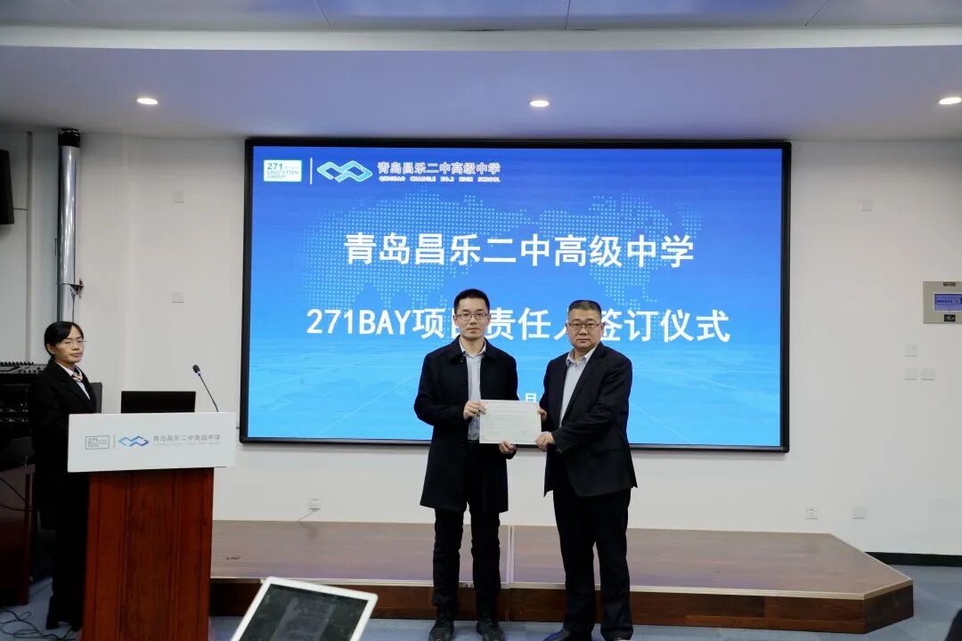 为更加高效有利促进271BAY在青岛昌乐二中高级中学的落地使用及保障271BAY的使用价值,执行校长牟庚国与学校271BAY项目管道责任人进行项目责任书签订。