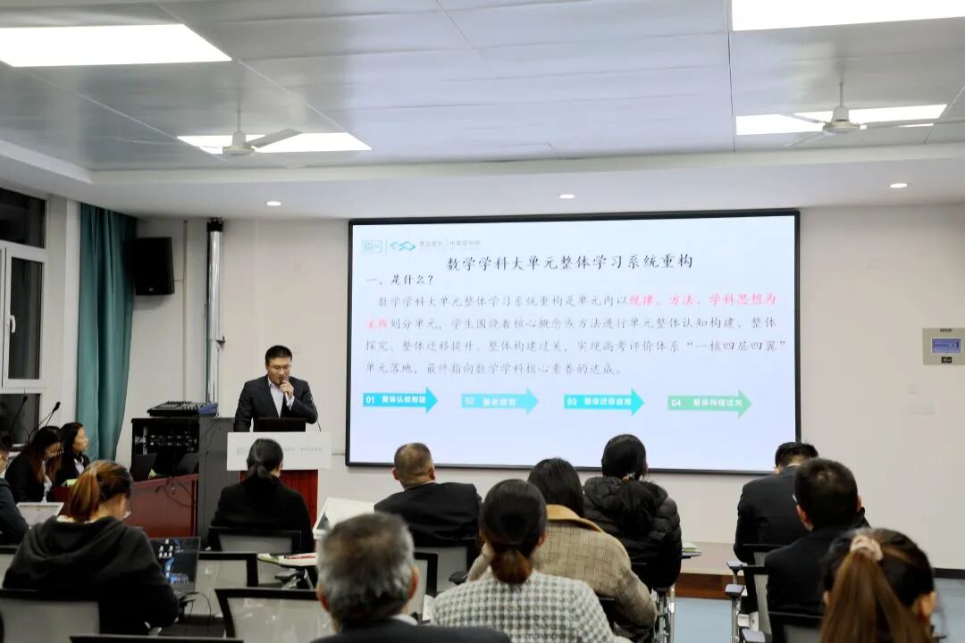 随后,顾琳琳老师与刘琪老师分别进行高三大单元整体学习系统重构学习感悟分享,表示大单元是基于学科核心大概念进行的划分,培养学生整体理解学科核心价值,提升学生的思维能力,对教师课程研究水平要求极高,所以老师们应当积极转变思维,基于目标进行问题思考,提升教学能力。